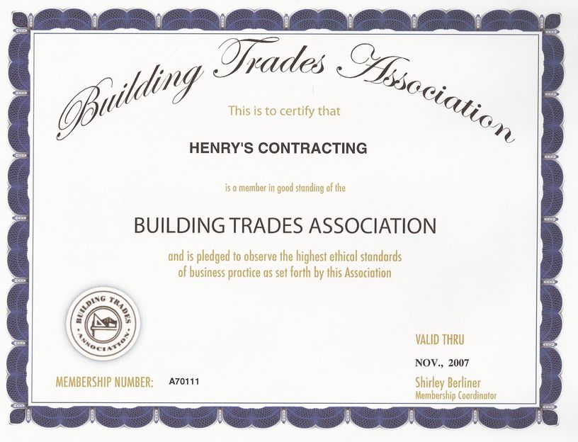 Approvals: | Better Business Bureau Member, Building Trades Association Member |